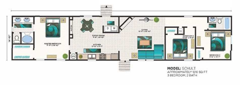 3 Dormitorios, 2 Baños, 1209 pies²Galería del Modelo