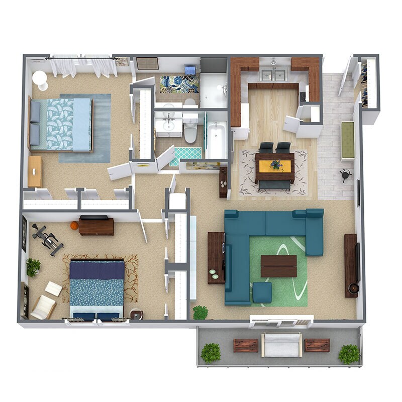 1 Dormitorio, 1 Baño, 720 pies²Disponible AhoraGalería del Modelo