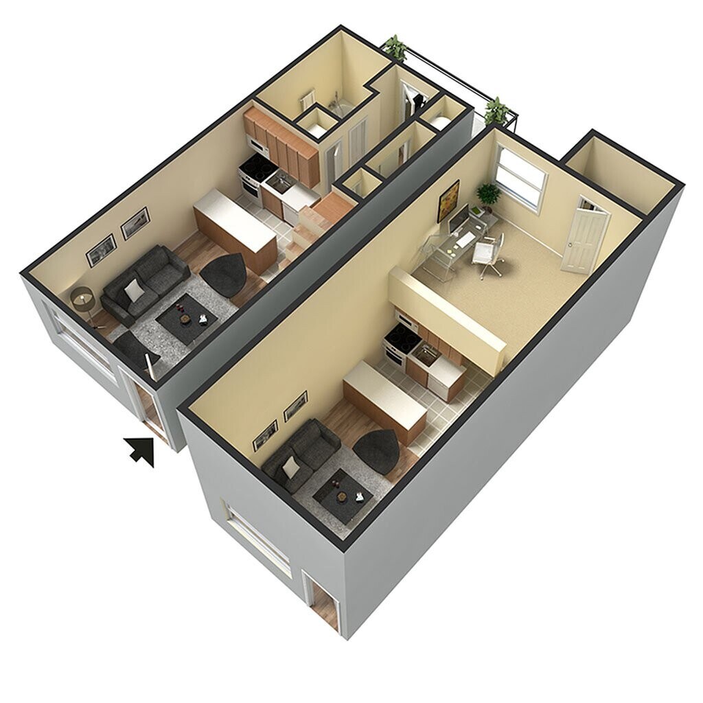 Modelo de apartamento: LoftB R1 Dormitorio, 1 Baño, 551 sq ftDisponible Ahora![]()