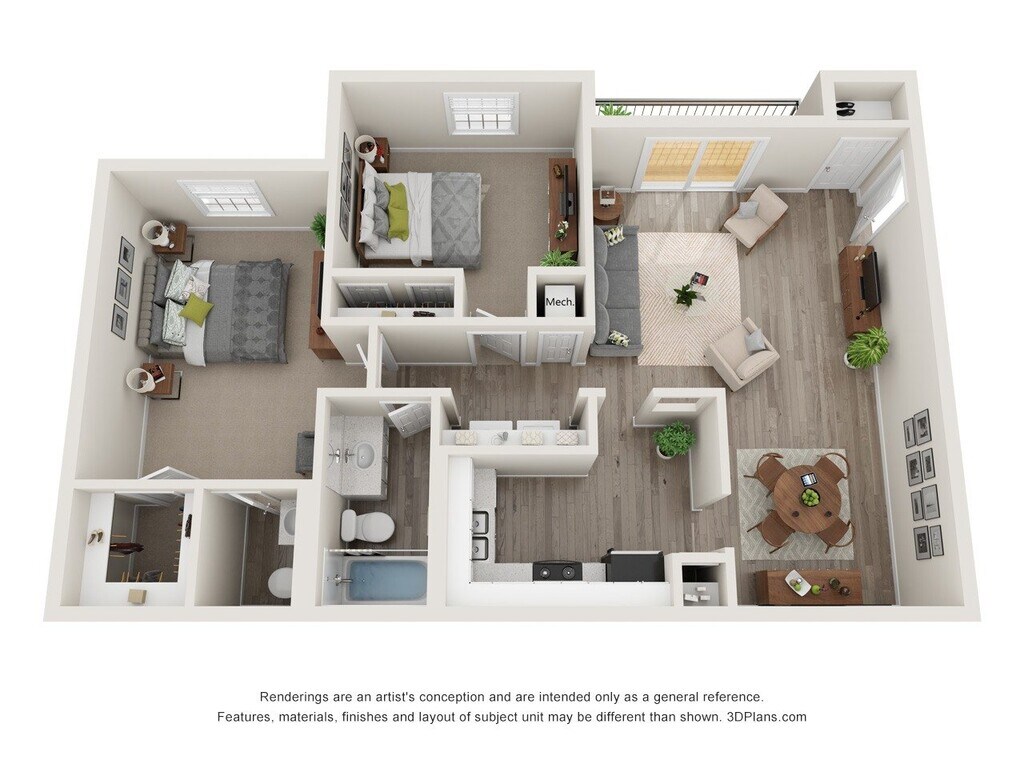 2 Dormitorios, 1.5 Baños, 1100 pies²Disponible AhoraGalería del Modelo
