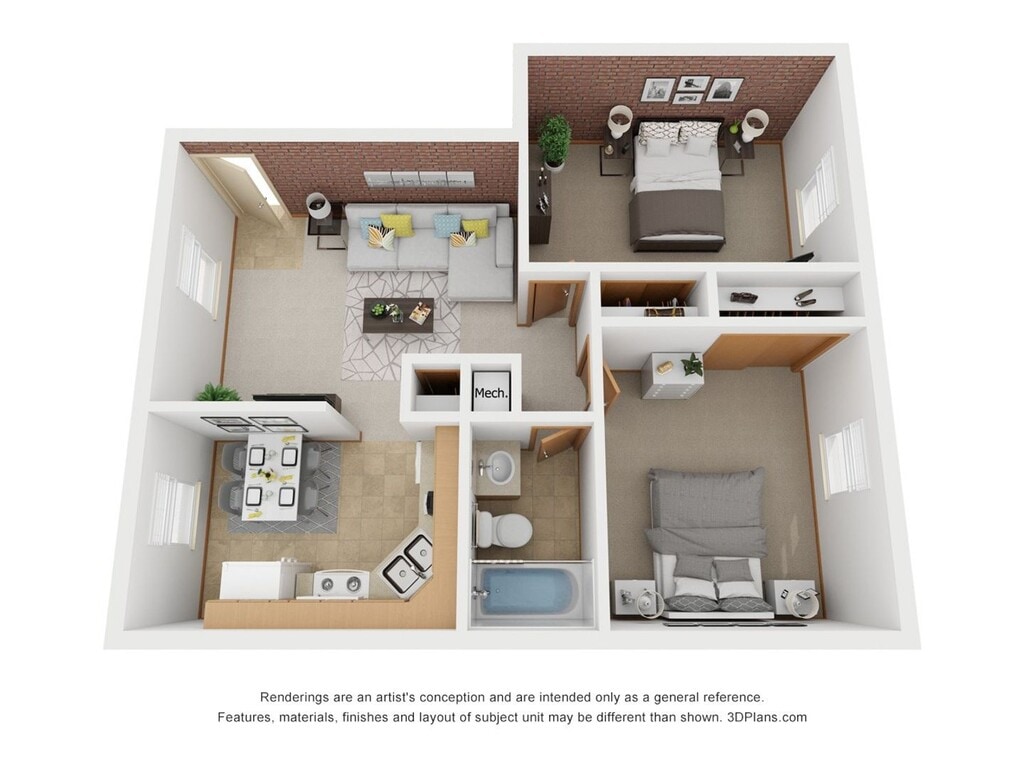 2 Dormitorios, 1 Baño, 750 pies²Disponible Aug 14Galería del Modelo