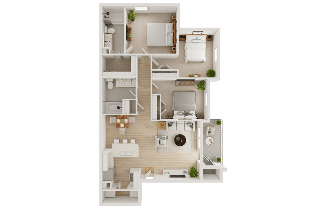 Modelo de apartamento: A2Desde $1,2361 Dormitorio, 1 Baño, 714 sq ftDisponible Ahora![]()
