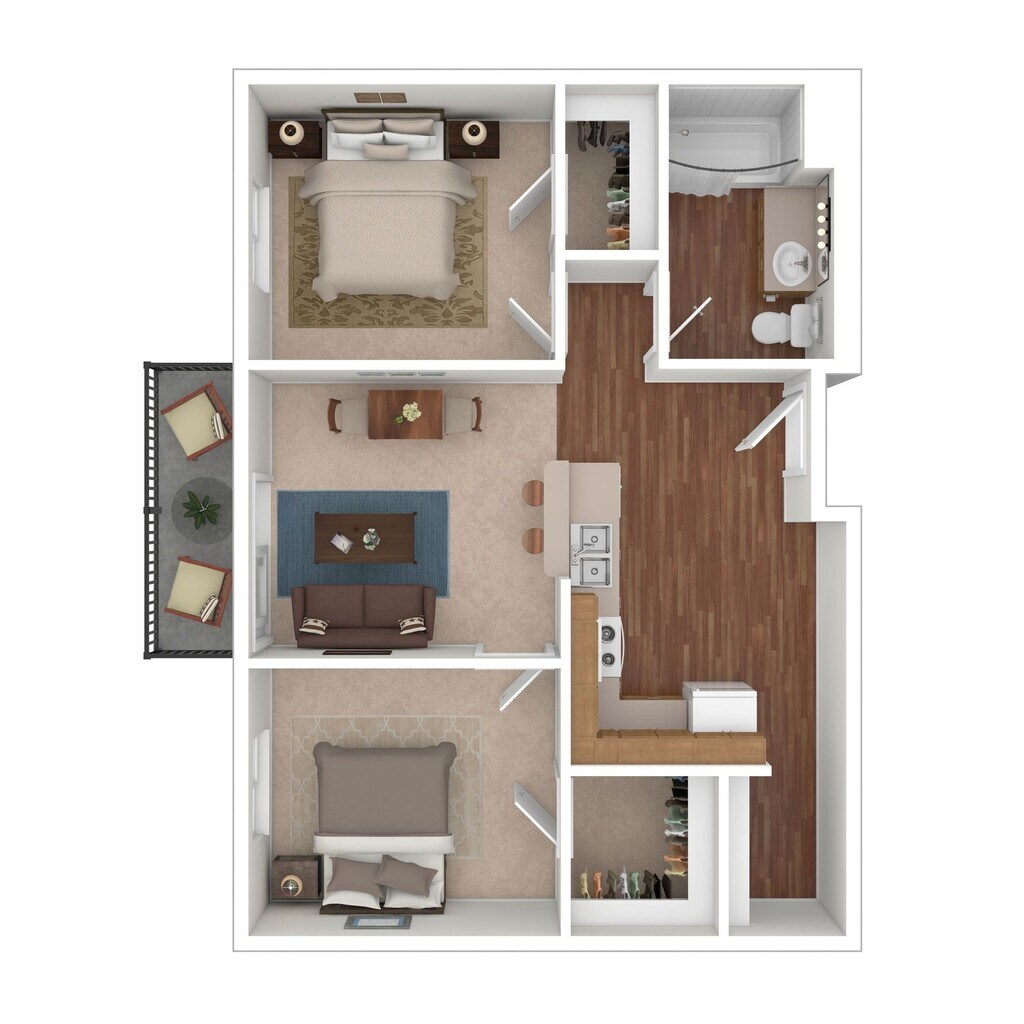 2 Dormitorios, 1 Baño, 749-754 pies²Disponible AhoraGalería del Modelo
