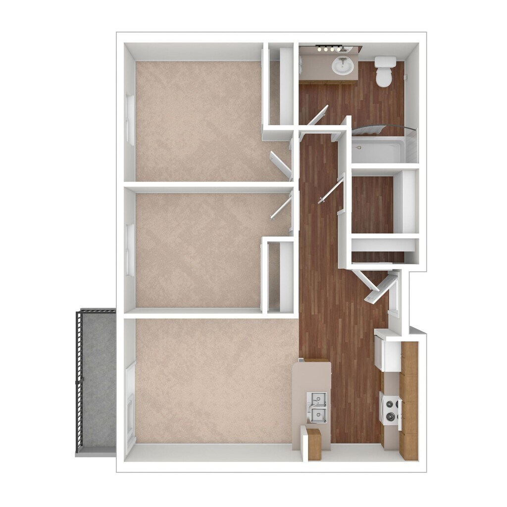 2 Dormitorios, 1 Baño, 749 pies²Disponible AhoraGalería del Modelo