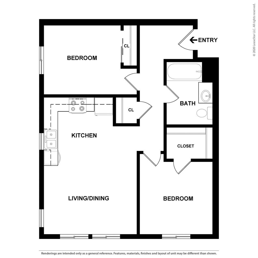 Modelo de apartamento: Lincoln2 Dormitorios, 1 Baño, 756 sq ftNo Disponible![]()