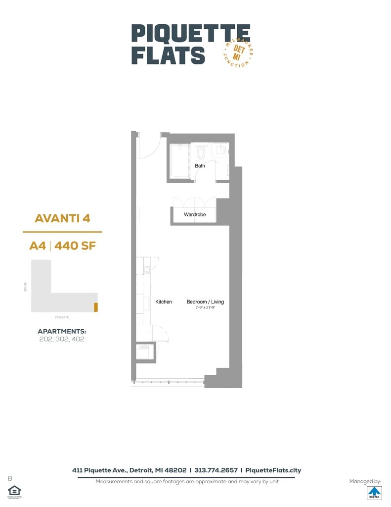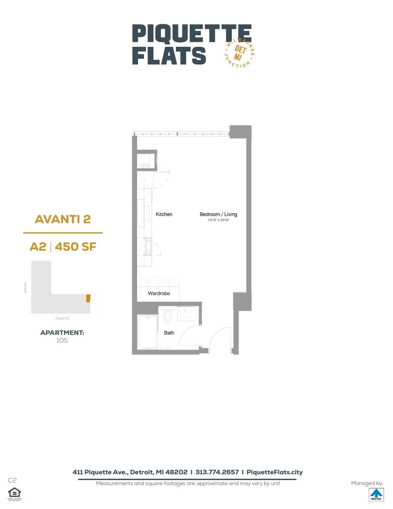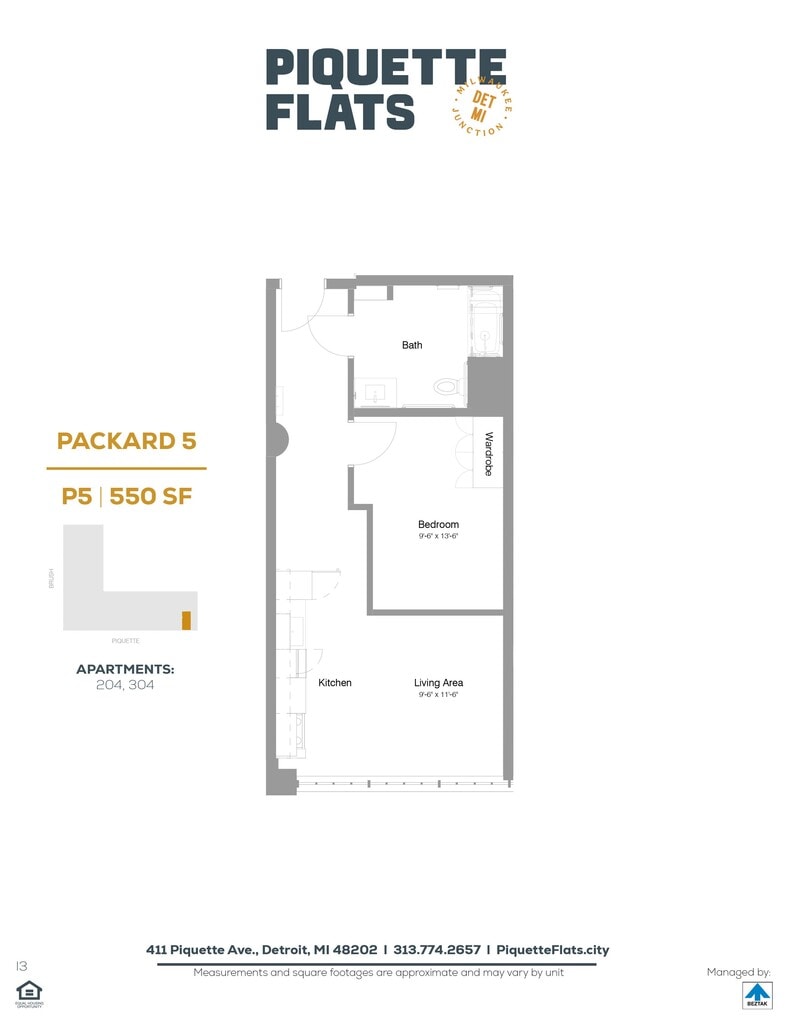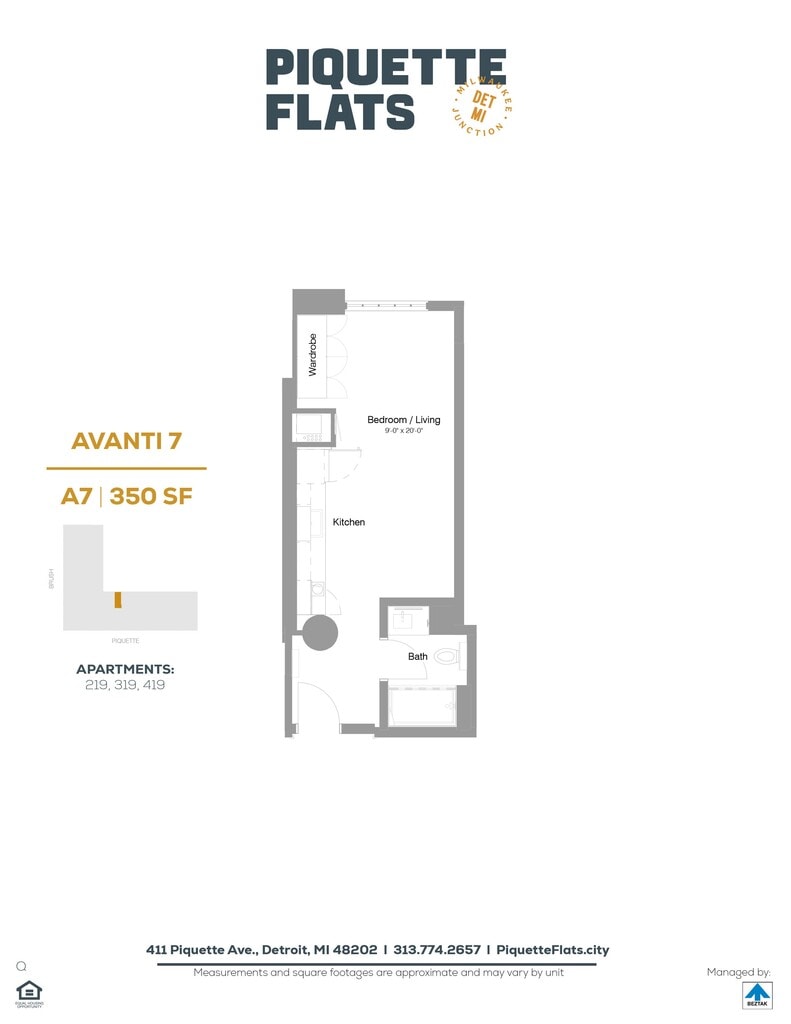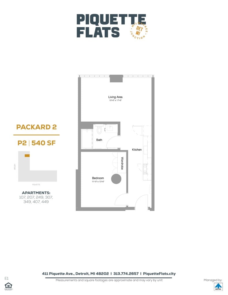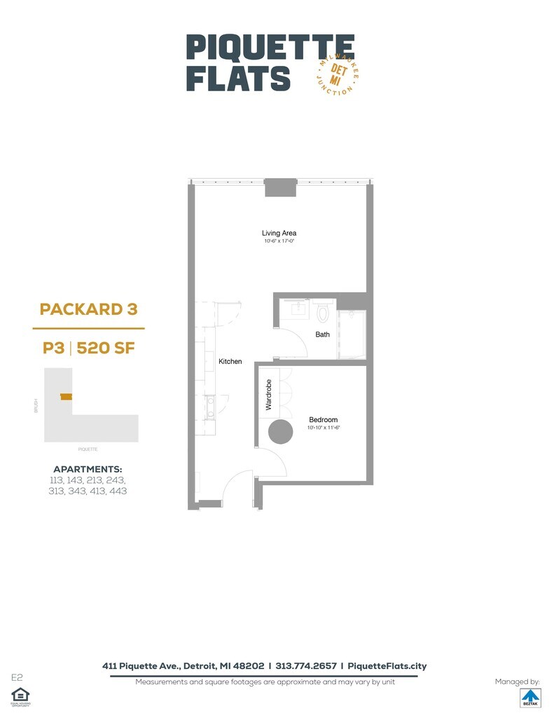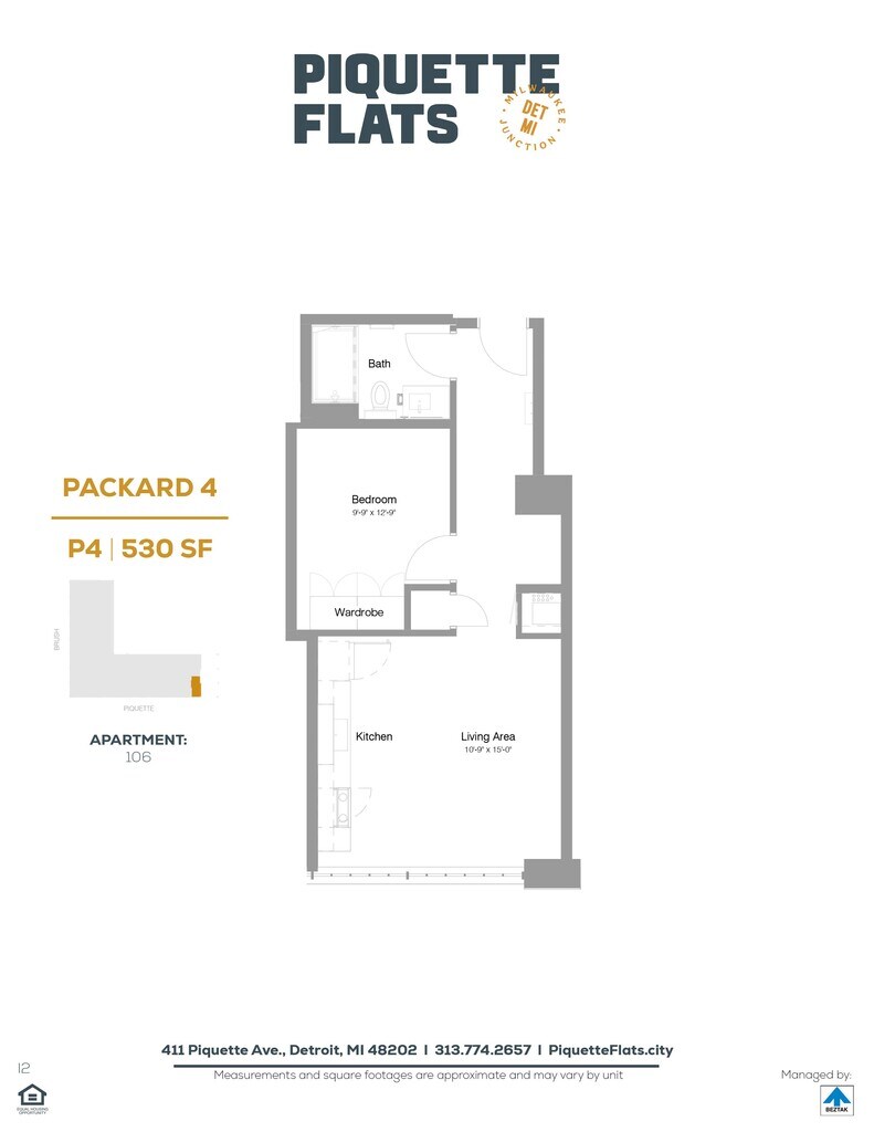 Piquette Flats se encuentra en el Barrio Milwaukee Junction y el código postal 48202 de Detroit, MI. Esta comunidad está gestionada profesionalmente por BEZTAK Properties