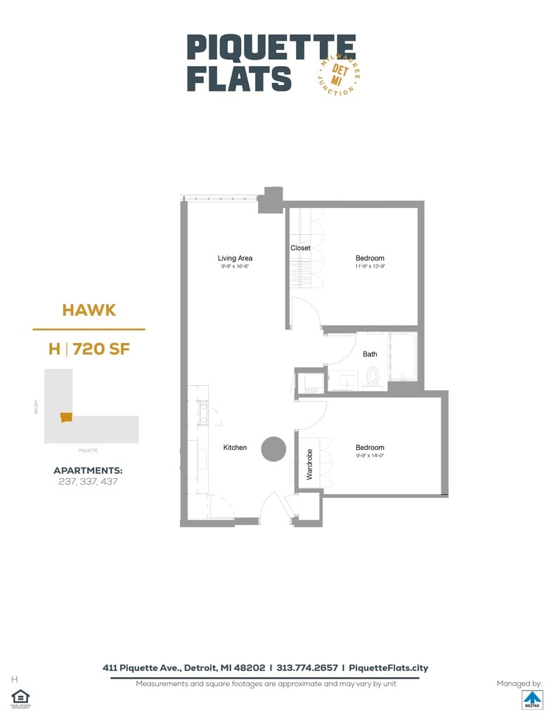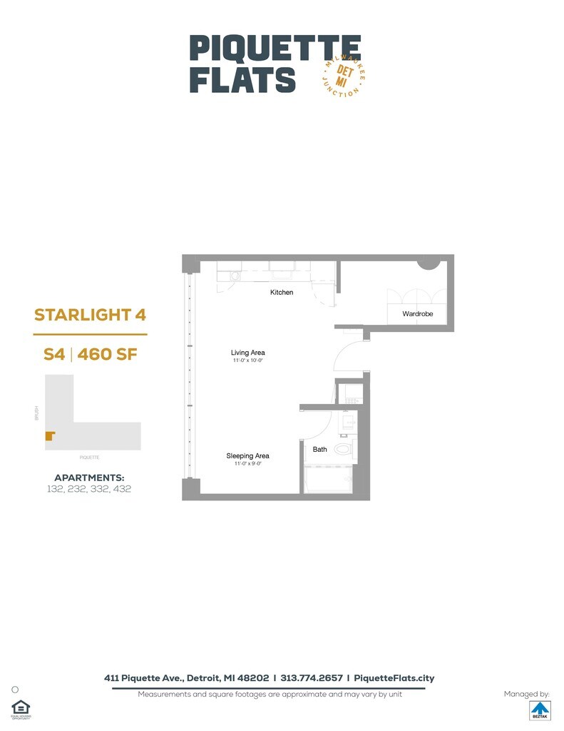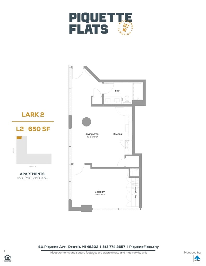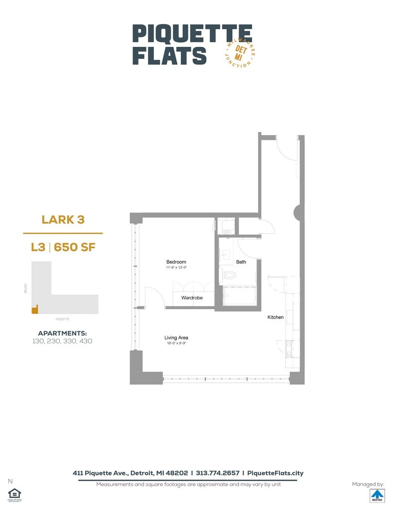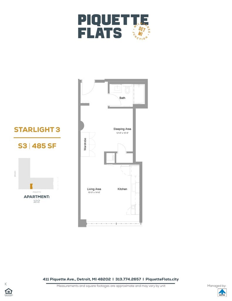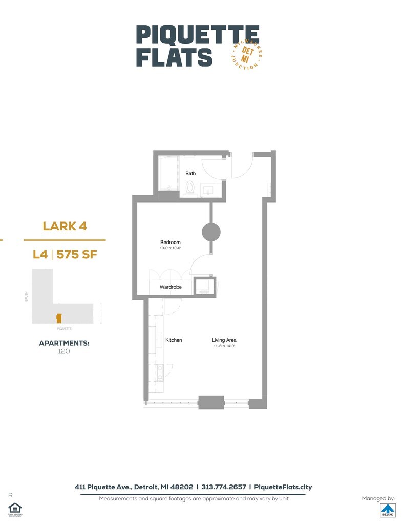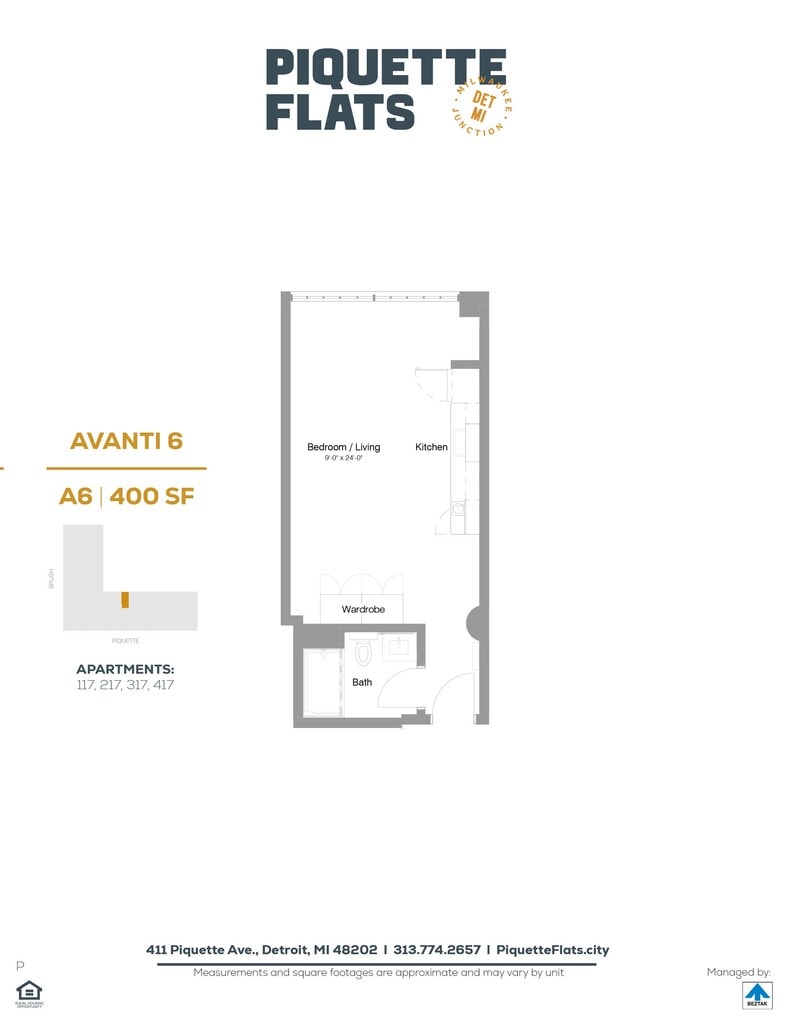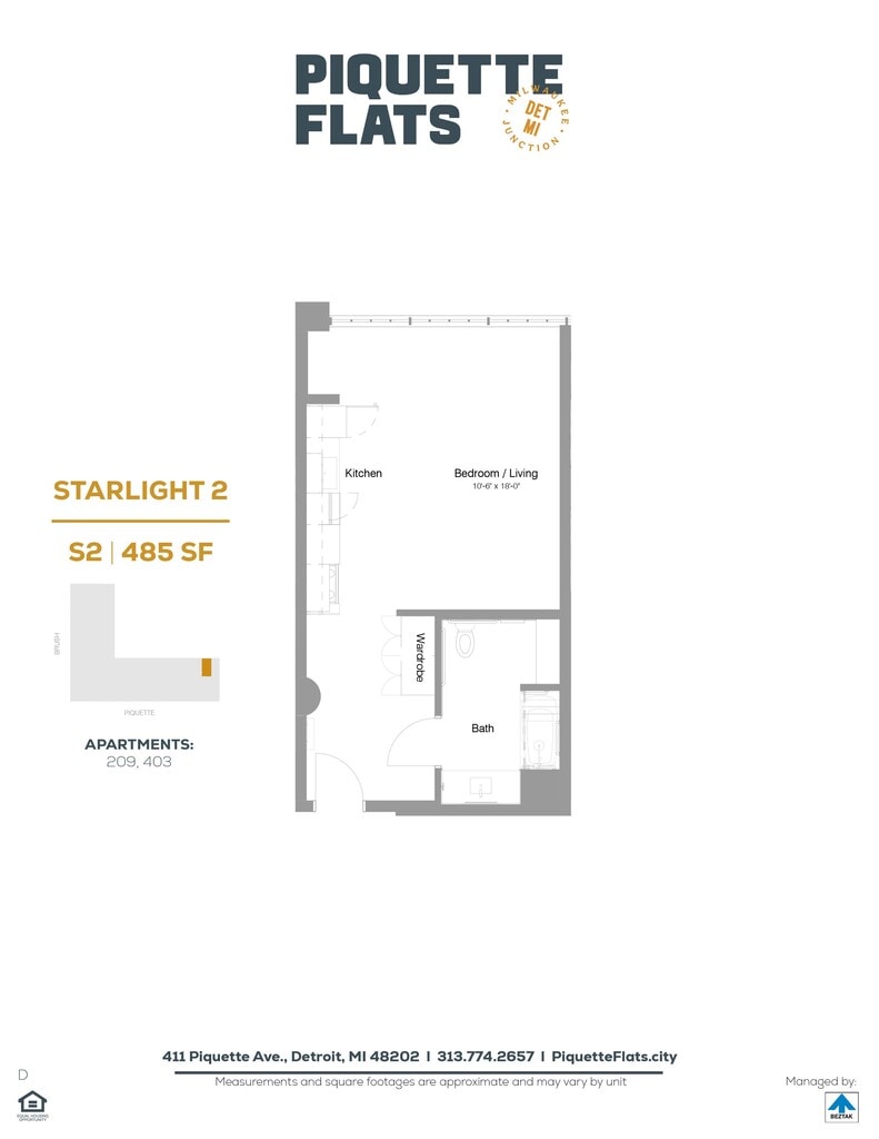Piquette Flats se encuentra en el Barrio Milwaukee Junction y el código postal 48202 de Detroit, MI. Esta comunidad está gestionada profesionalmente por BEZTAK Properties