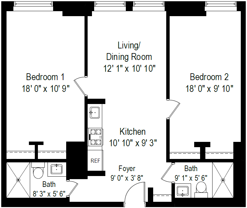 Modelo de apartamento: 2 Bed, 1 Bath - Style CLlame para Precios2 Dormitorios, 1 Baño, 683 sq ftNo Disponible![]()