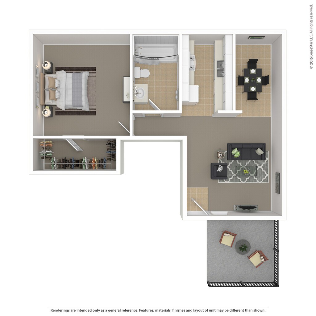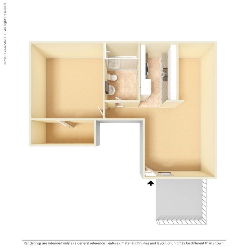 Medium 1 Bed 1 Bath - Plano 3 Los planos de la planta son una interpretación artística. Todas las dimensiones son aproximadas. Los tamaños o el detalle del producto real y sus especificaciones pueden variar. No todas las características están disponibles en todos los hogares para rentar. Los precios y la disponibilidad están sujetos a cambios. El alquiler que se muestra es mensual. Se pueden aplicar ciertos cargos, por ejemplo, entrega de paquetes, recolección de basura, agua, servicios, etc. Depositos varian. Consulta a un representante para conocer detalles.