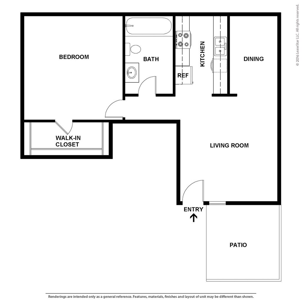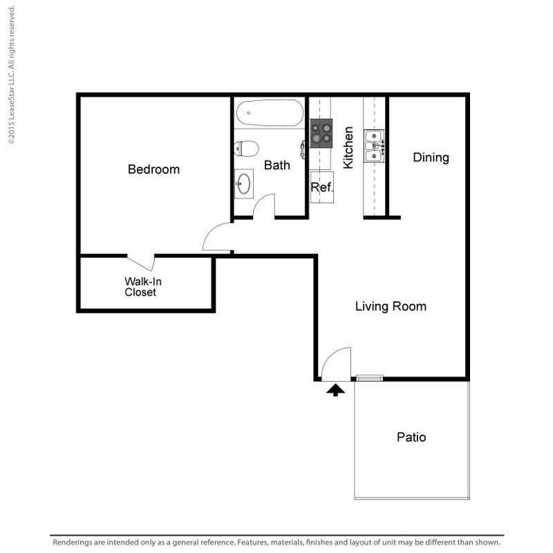 Medium 1 Bed 1 Bath - Plano 1 Los planos de la planta son una interpretación artística. Todas las dimensiones son aproximadas. Los tamaños o el detalle del producto real y sus especificaciones pueden variar. No todas las características están disponibles en todos los hogares para rentar. Los precios y la disponibilidad están sujetos a cambios. El alquiler que se muestra es mensual. Se pueden aplicar ciertos cargos, por ejemplo, entrega de paquetes, recolección de basura, agua, servicios, etc. Depositos varian. Consulta a un representante para conocer detalles.
