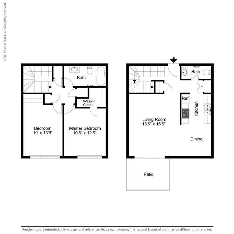 Large 2 Bed 1.5 Bath - Plano 2 Los planos de la planta son una interpretación artística. Todas las dimensiones son aproximadas. Los tamaños o el detalle del producto real y sus especificaciones pueden variar. No todas las características están disponibles en todos los hogares para rentar. Los precios y la disponibilidad están sujetos a cambios. El alquiler que se muestra es mensual. Se pueden aplicar ciertos cargos, por ejemplo, entrega de paquetes, recolección de basura, agua, servicios, etc. Depositos varian. Consulta a un representante para conocer detalles.
