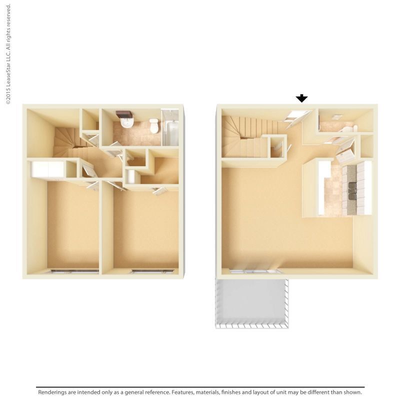 Large 2 Bed 1.5 Bath - Plano 3 Los planos de la planta son una interpretación artística. Todas las dimensiones son aproximadas. Los tamaños o el detalle del producto real y sus especificaciones pueden variar. No todas las características están disponibles en todos los hogares para rentar. Los precios y la disponibilidad están sujetos a cambios. El alquiler que se muestra es mensual. Se pueden aplicar ciertos cargos, por ejemplo, entrega de paquetes, recolección de basura, agua, servicios, etc. Depositos varian. Consulta a un representante para conocer detalles.