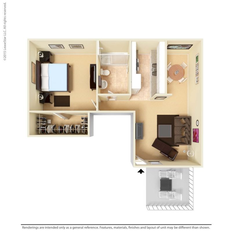 Medium 1 Bed 1 Bath Cozy - Plano 2 Los planos de la planta son una interpretación artística. Todas las dimensiones son aproximadas. Los tamaños o el detalle del producto real y sus especificaciones pueden variar. No todas las características están disponibles en todos los hogares para rentar. Los precios y la disponibilidad están sujetos a cambios. El alquiler que se muestra es mensual. Se pueden aplicar ciertos cargos, por ejemplo, entrega de paquetes, recolección de basura, agua, servicios, etc. Depositos varian. Consulta a un representante para conocer detalles.