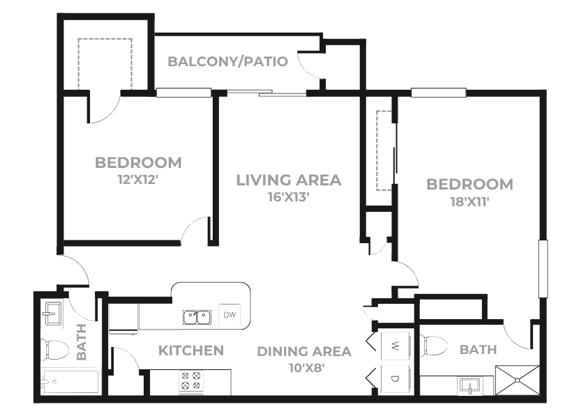 1 Dormitorio, 1 Baño, 800 pies²Disponible AhoraGalería del Modelo