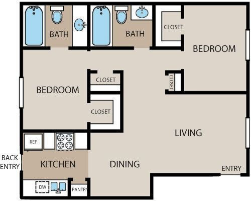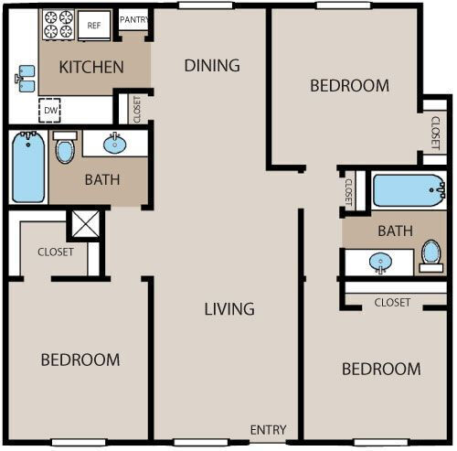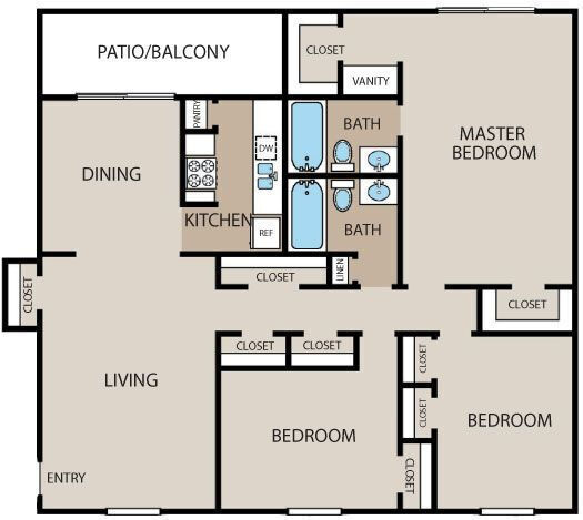 F - Imagen 1 Unidad de apartamento: C2Modelo de apartamento: F$1,3493 Dormitorios, 2 Baños, 1190 sq ftDisponible AhoraPlano: E