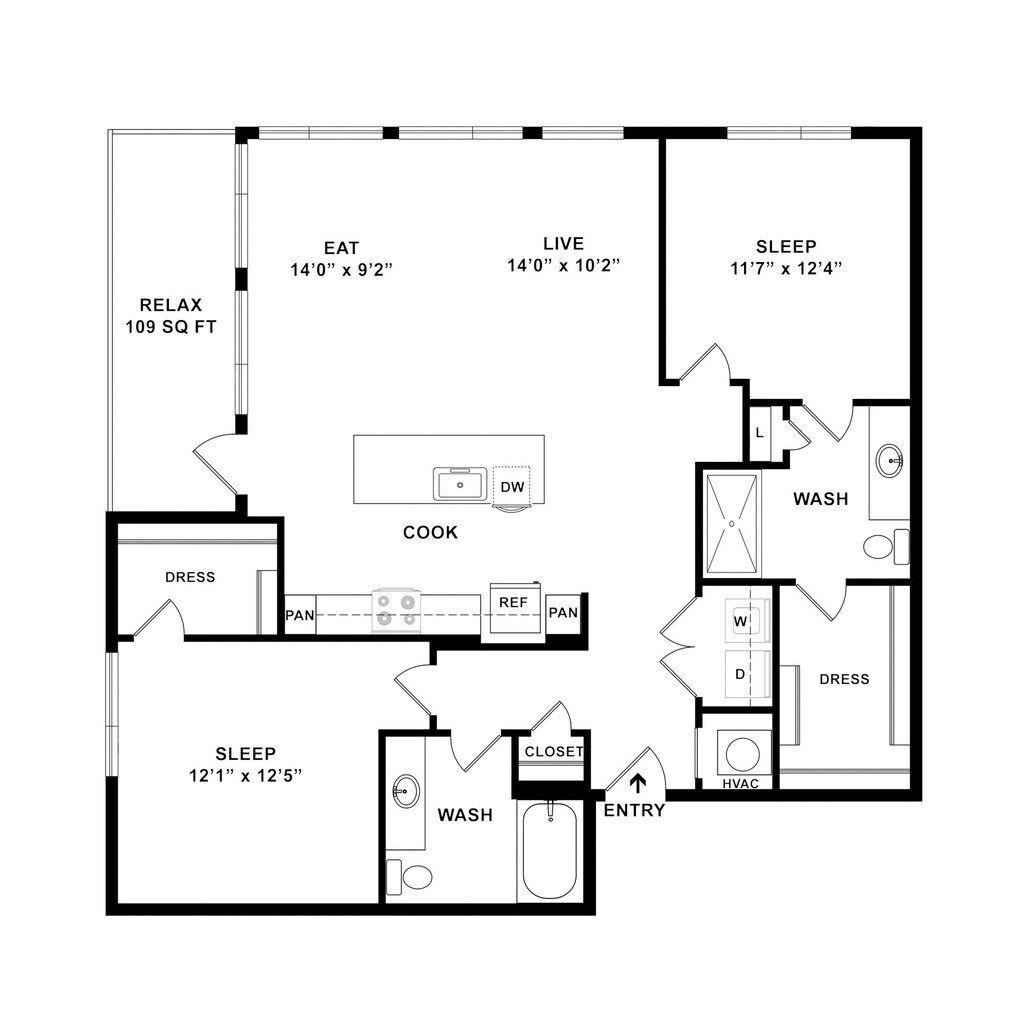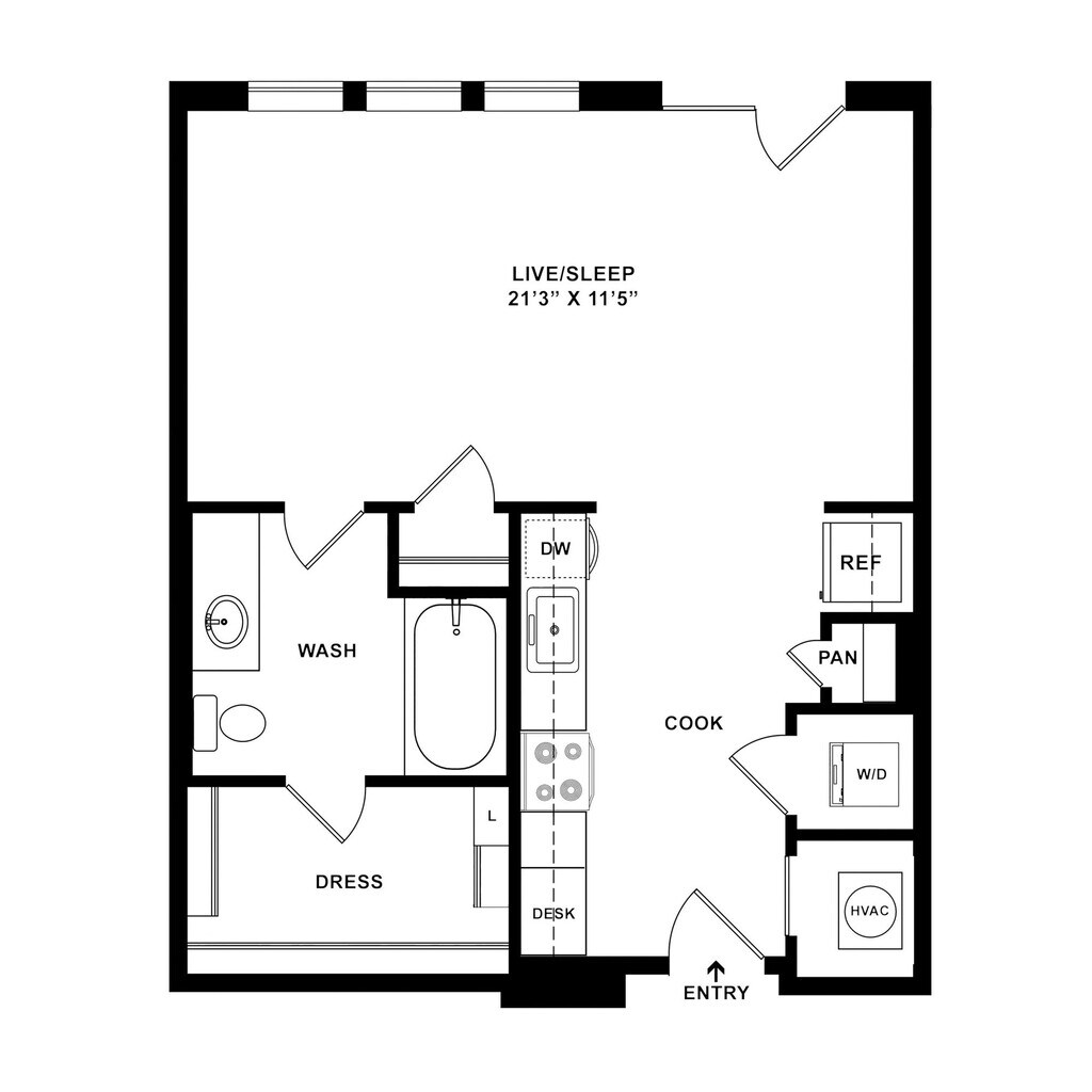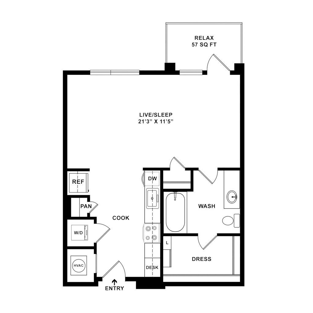Modelo de apartamento: S21Desde $1,385Estudio, 1 Baño, 572 sq ftDisponible Ahora![]()