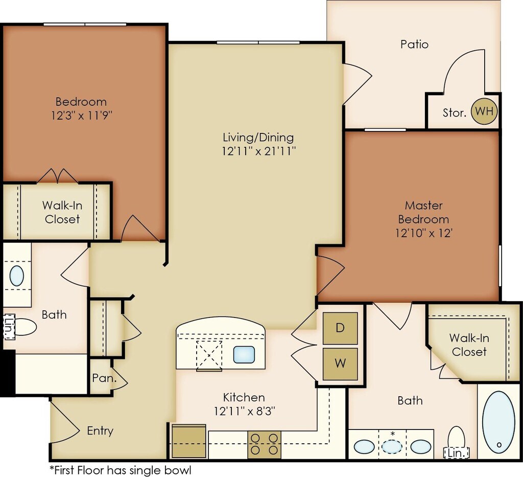 Modelo de apartamento: A3Desde $1,1761 Dormitorio, 1 Baño, 834 sq ftDisponible Ahora![]()