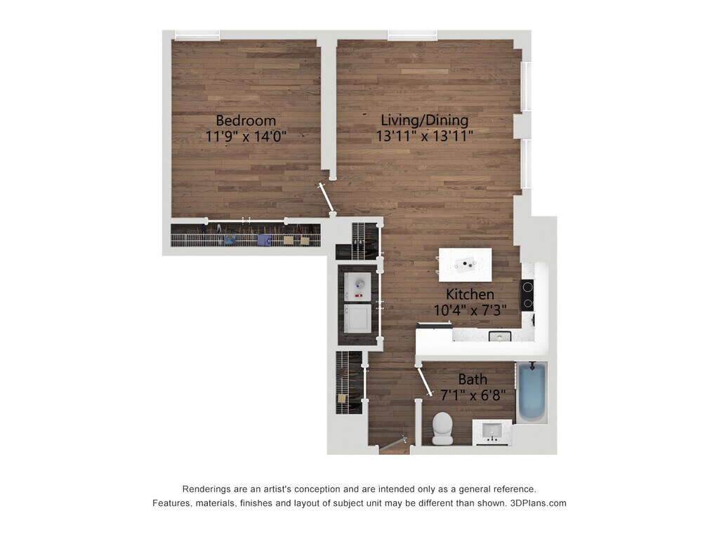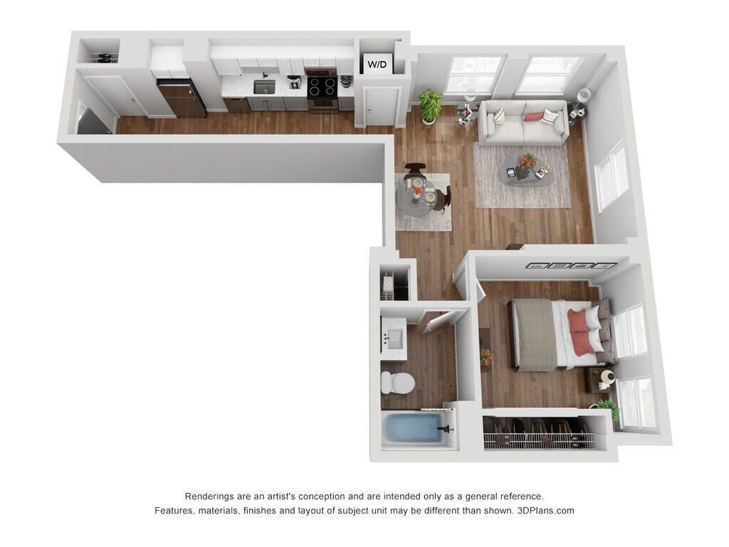 1 Dormitorio, 1 Baño, 591 pies²Disponible AhoraGalería del Modelo