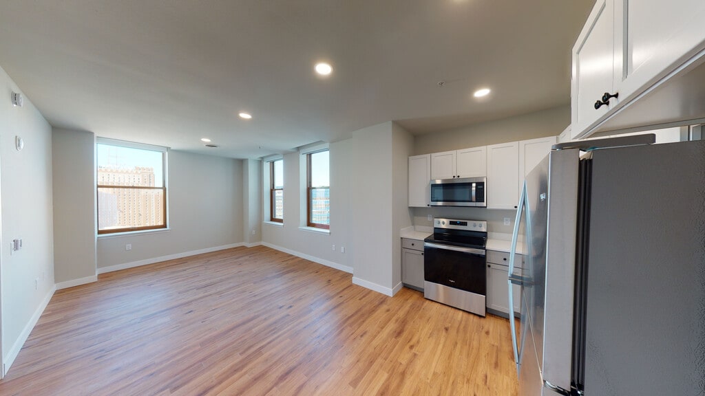 Ubicado en el corazón del centro de la ciudad en el vecindario de Westown, Playbill Flats es la combinación de elegancia histórica y lujo moderno. Estos apartamentos recientemente renovados ofrecen diseños tipo estudio, de una y dos habitaciones con vistas panorámicas al lago y a la ciudad. Los residentes se encontrarán a una poca distancia a pie de las mejores atracciones del centro, como 3rd St. Market Hall, el foro Fiserv, el distrito de entretenimiento de 3rd St. y el lago. Las comodidades en el lugar incluyen lavado para perros y área de juegos, gimnasio, sala club, espacio de trabajo compartido, teatro y espacio para creadores.