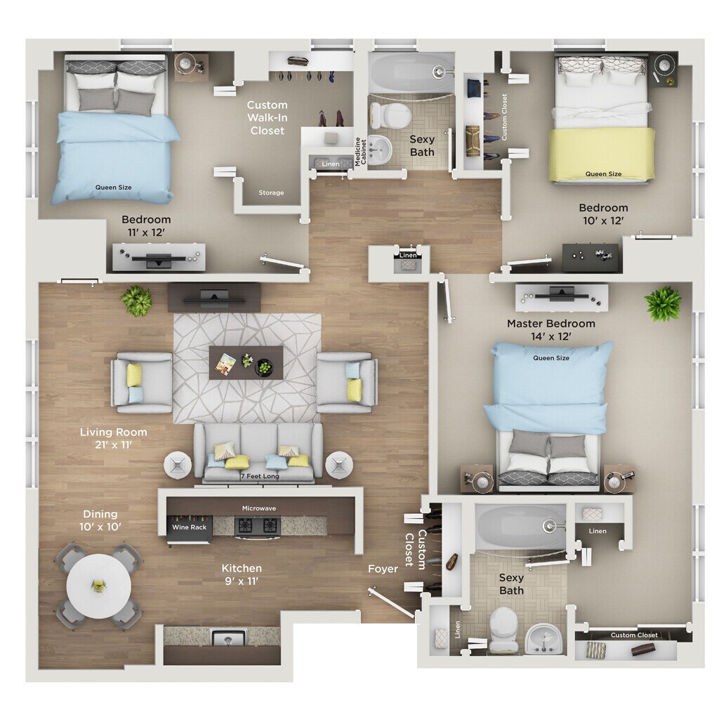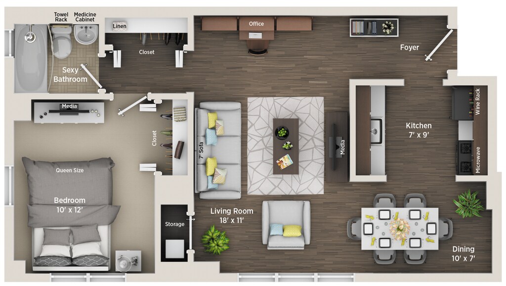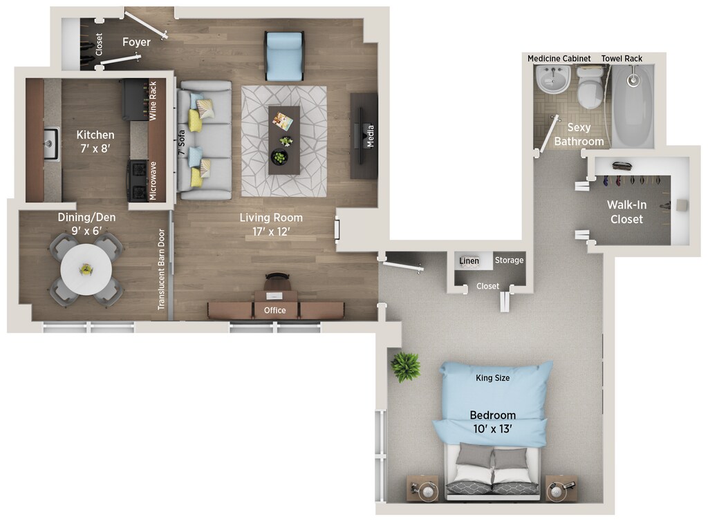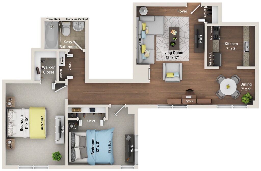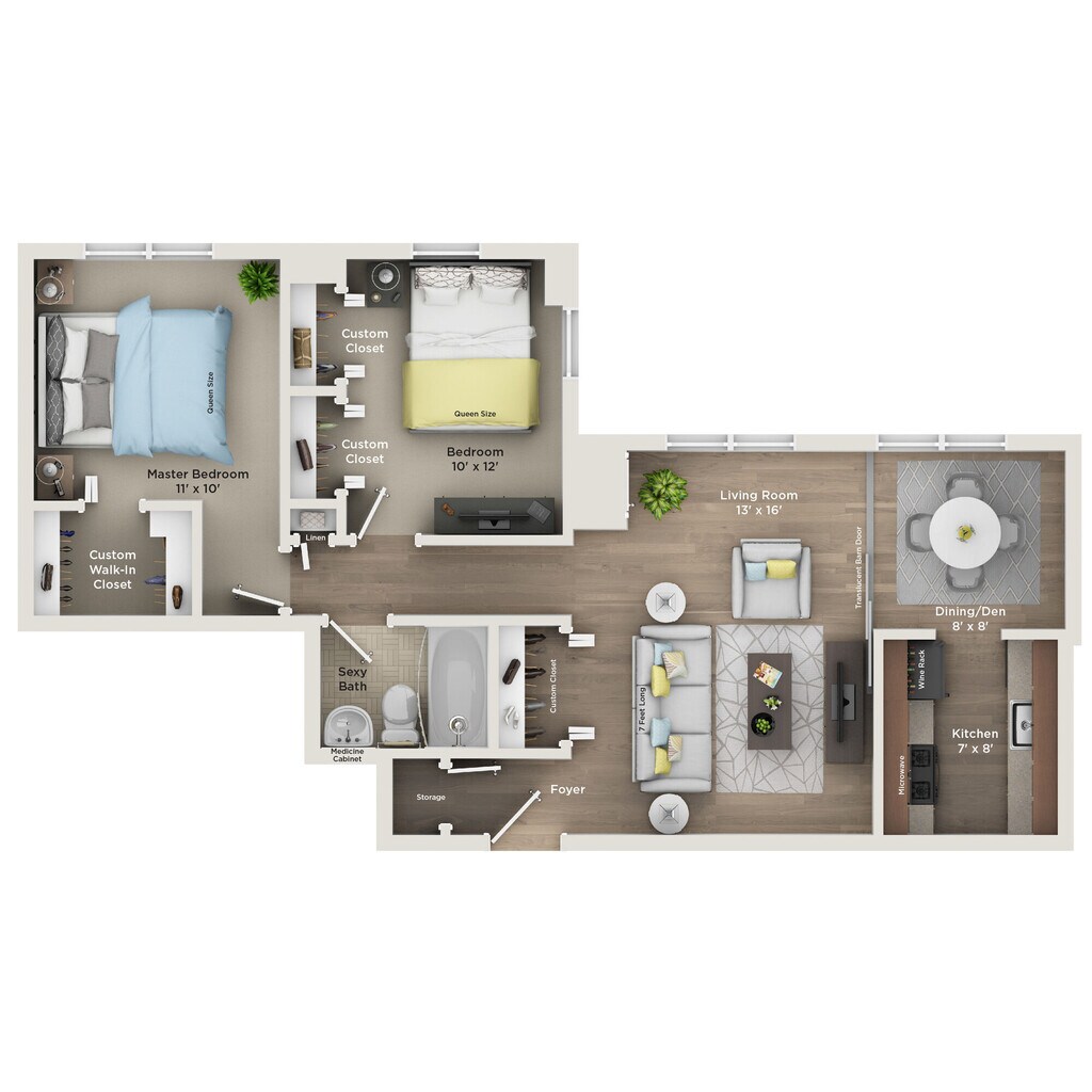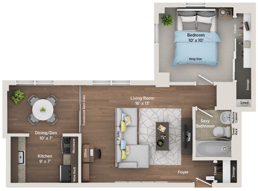 1 Dormitorio, 1 Baño, 720 pies²El más grandeEsta opción tiene las unidades más grandes para este modeloGalería del Modelo