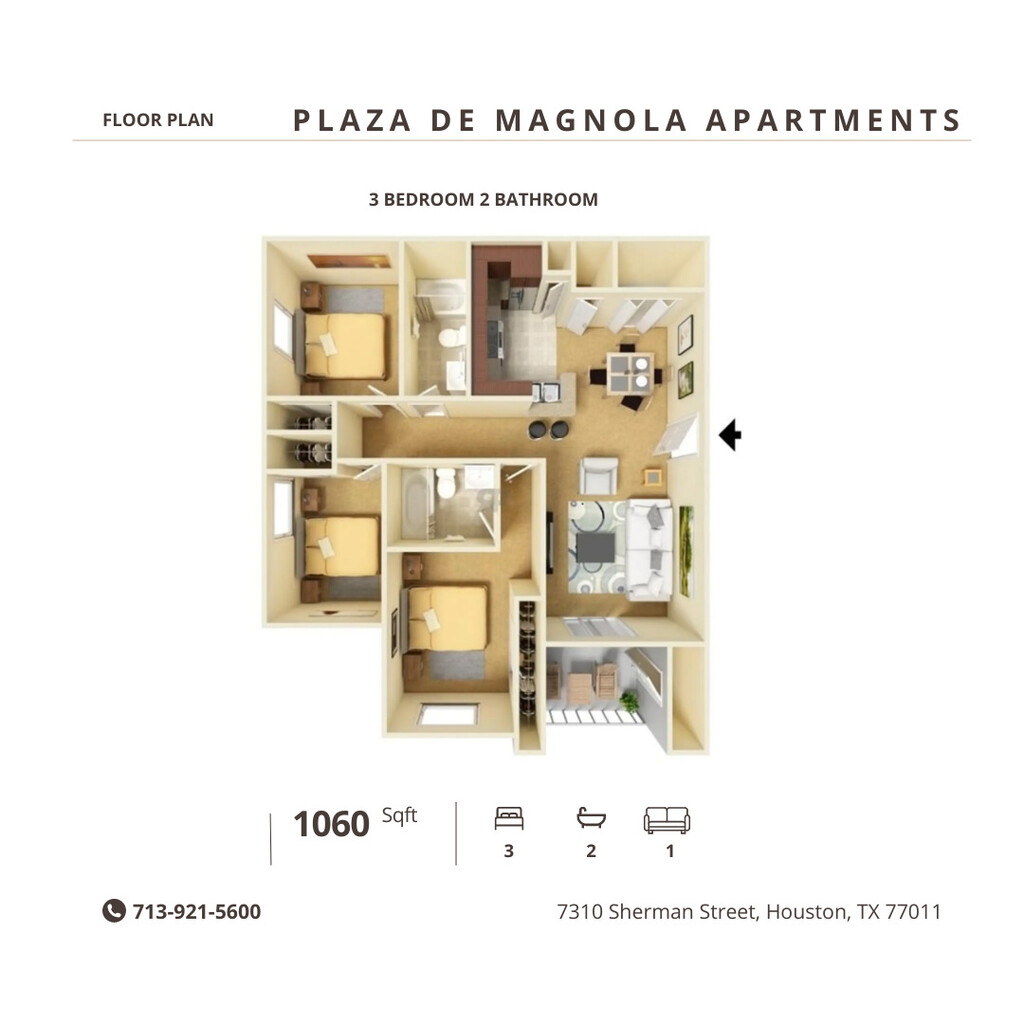Plaza De Magnolia ofrece apartamentos de 1 a 3 Dormitorios desde $1,099 con 698–1,060 pies cuadrados. Aquí está el precio actual y la disponibilidad: