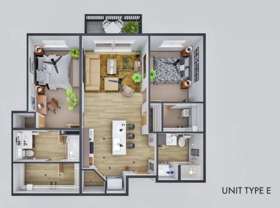 2 Bedroom (Type E) - Plano 1 Unidad de apartamento: 217Modelo de apartamento: 2 Bedroom (Type E)$1,8502 Dormitorios, 2 Baños, 1025 sq ftDisponible Ahora2 Bedroom (Type C)