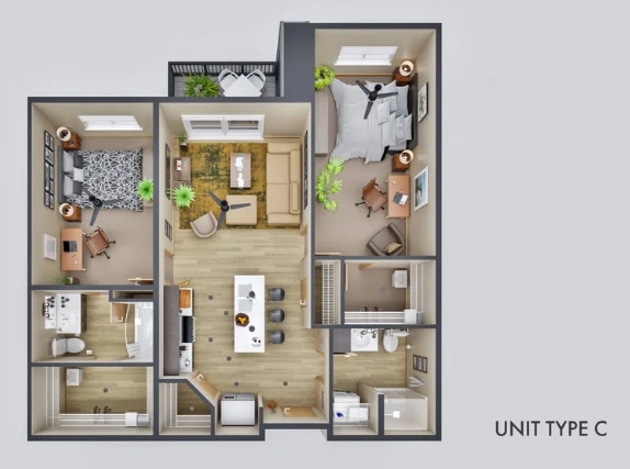 Modelo de apartamento: 2 Bedroom (Type C)Desde $1,8502 Dormitorios, 2 Baños, 1030 sq ftDisponible Ahora![]()