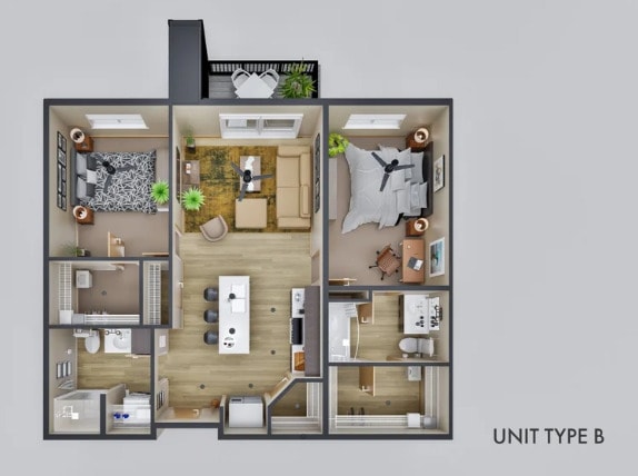 Modelo de apartamento: 2 Bedroom (Type B)$1,8002 Dormitorios, 2 Baños, 968 sq ftDisponible Ahora![]()