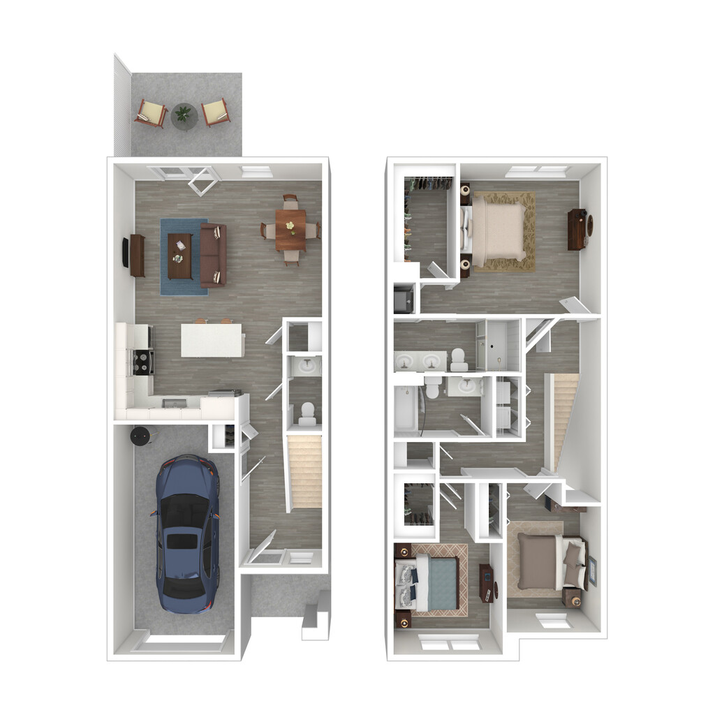 Modelo de apartamento: Pleasant Stables$2,1503 Dormitorios, 2.5 Baños, 1508-1516 sq ftDisponible Ahora![]()