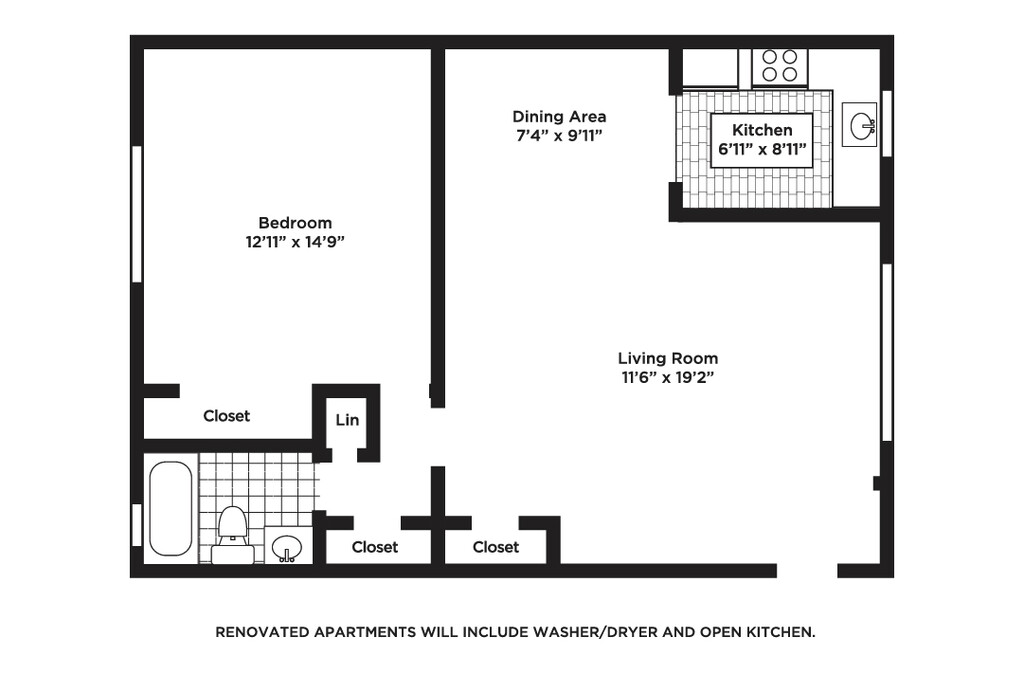 1 Dormitorio, 1 Baño, 675 pies²Disponible AhoraGalería del Modelo