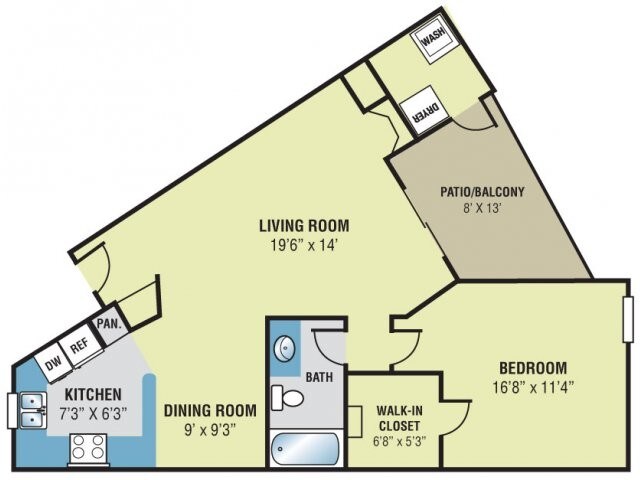 Modelo de apartamento: The Oak$8581 Dormitorio, 1 Baño, 677 sq ftDisponible AhoraPlanosFotos![]()