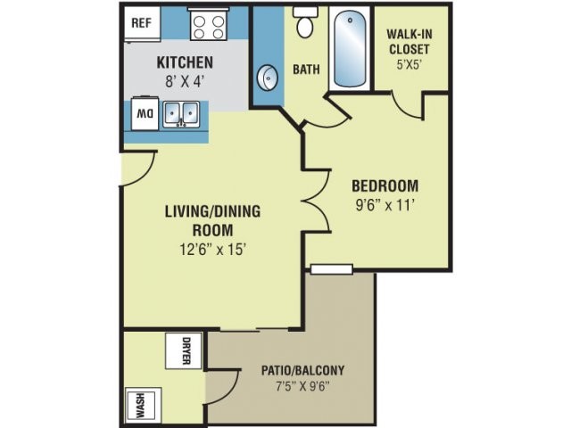 Modelo de apartamento: The Birch$7701 Dormitorio, 1 Baño, 450 sq ftDisponible AhoraPlanosFotos![]()