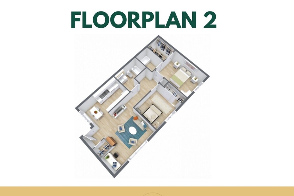 Modelo de apartamento: Floorplan 2Desde $2,9002 Dormitorios, 2 Baños, sq ftDisponible Ahora![]()