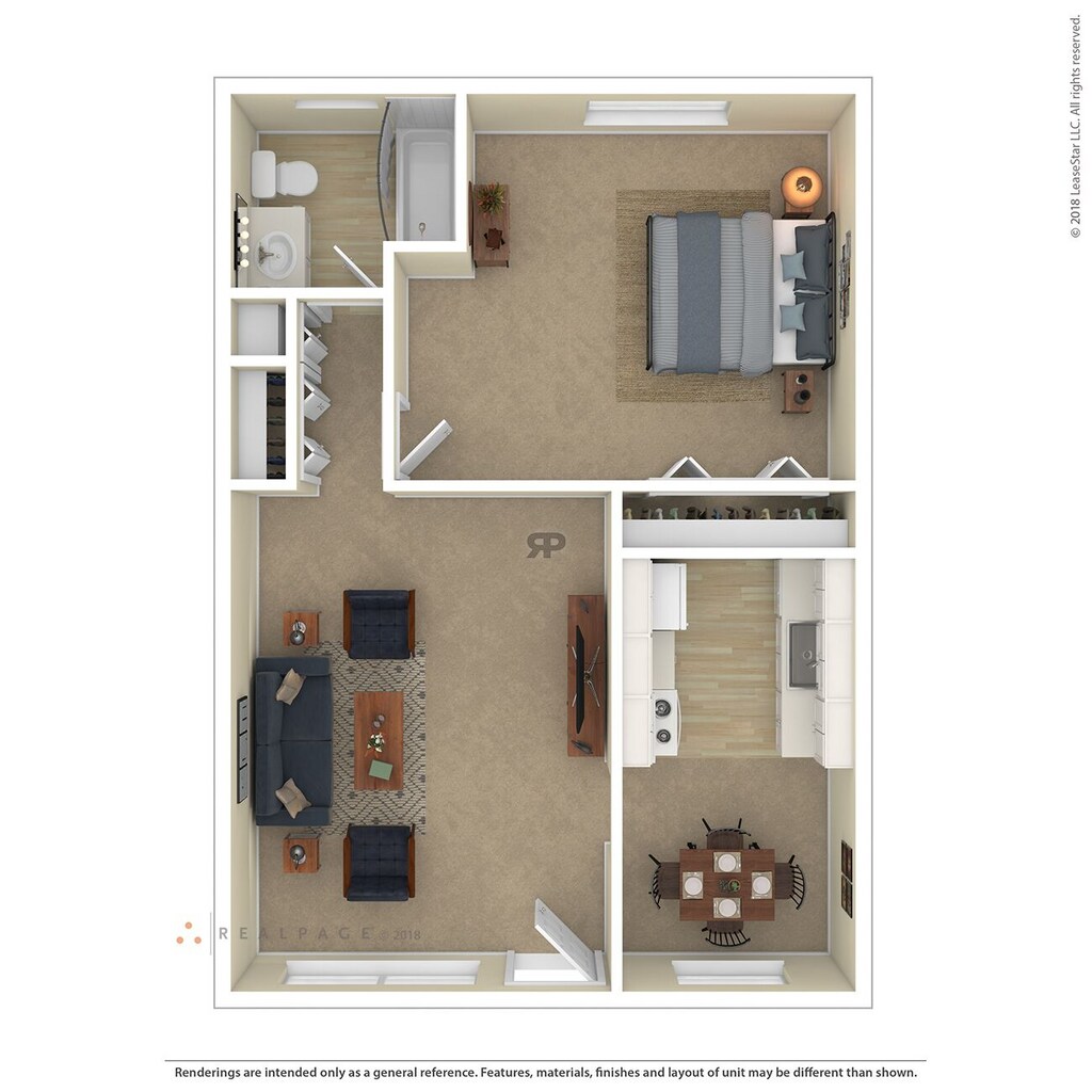 1 Dormitorio, 1 Baño, 735 pies²Disponible AhoraGalería del Modelo