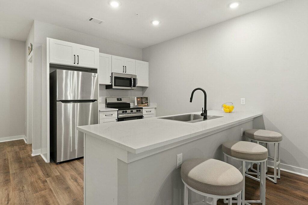Pointe Villas Brunswick se enorgullece de ofrecer nuevas villas de 2 y 3 habitaciones en alquiler. Nuestros amplios planos de planta con garajes adjuntos tienen lujosos detalles interiores, como pisos estilo madera, encimeras de cuarzo, electrodomésticos de acero inoxidable, amplias islas de cocina, iluminación LED, entrada sin llave y mucho más. Los residentes de Pointe Villas Brunswick disfrutarán de comodidades de lujo, como nuestro gimnasio disponible las 24 horas con equipos de entrenamiento cardiovascular y de fuerza, piscina estilo centro turístico con cabañas privadas, centro de conferencias y negocios disponible las 24 horas y estación de café/té Starbucks. Nuestro complejo que admite mascotas incluye parques para perros con equipo de agilidad y un spa para mascotas.