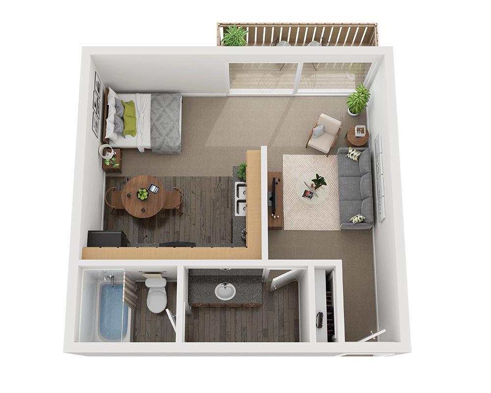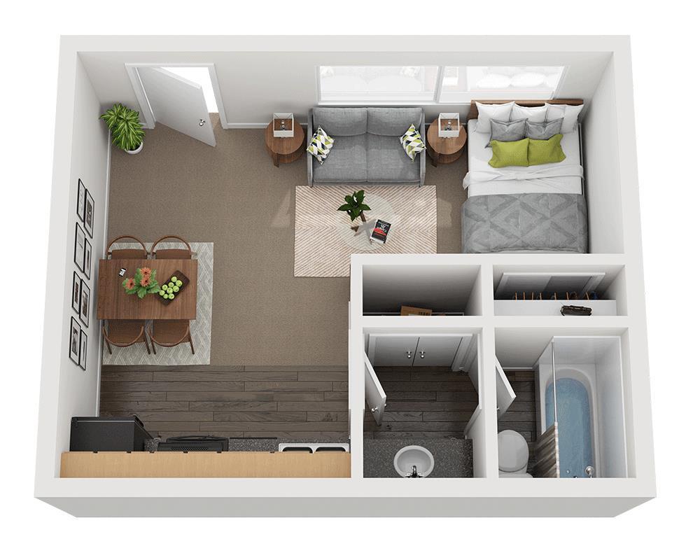 Estudio, 1 Baño, 480 pies²El más grandeEsta opción tiene las unidades más grandes para este modeloGalería del Modelo
