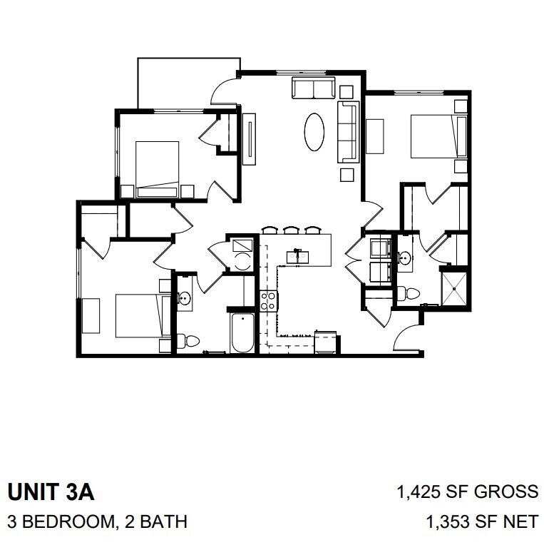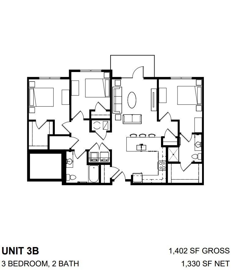 Geode 60% - Plano 1 Unidad de apartamento: 1-302Modelo de apartamento: Geode 60%$1,6413 Dormitorios, 2 Baños, 1353 sq ftDisponible AhoraOak 30%