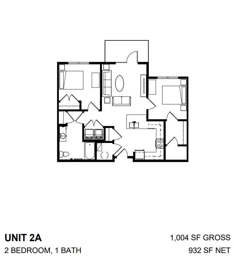 2 Dormitorios, 1 Baño, 932 pies²Galería del Modelo