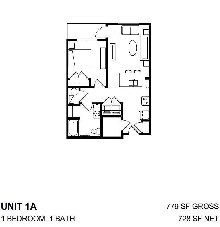 1 Dormitorio, 1 Baño, 728 pies²Galería del Modelo