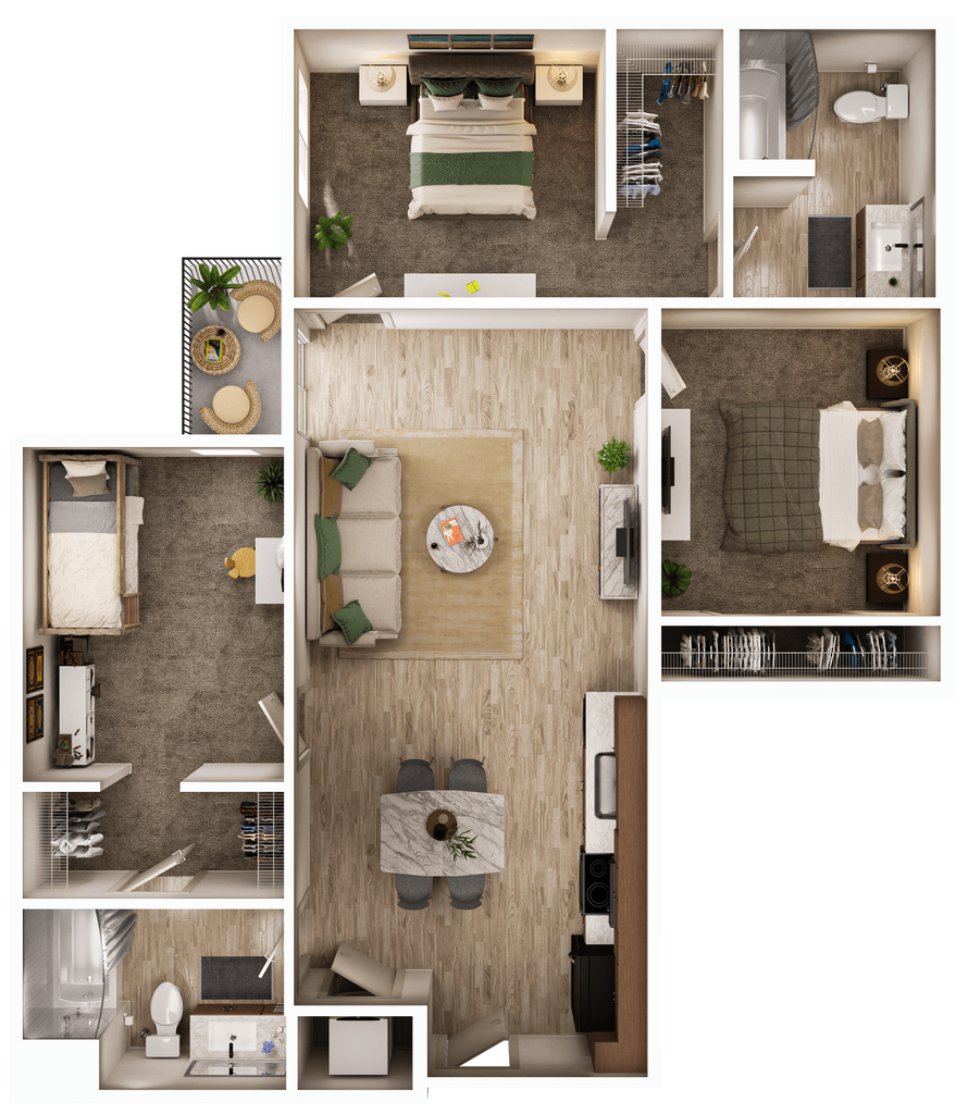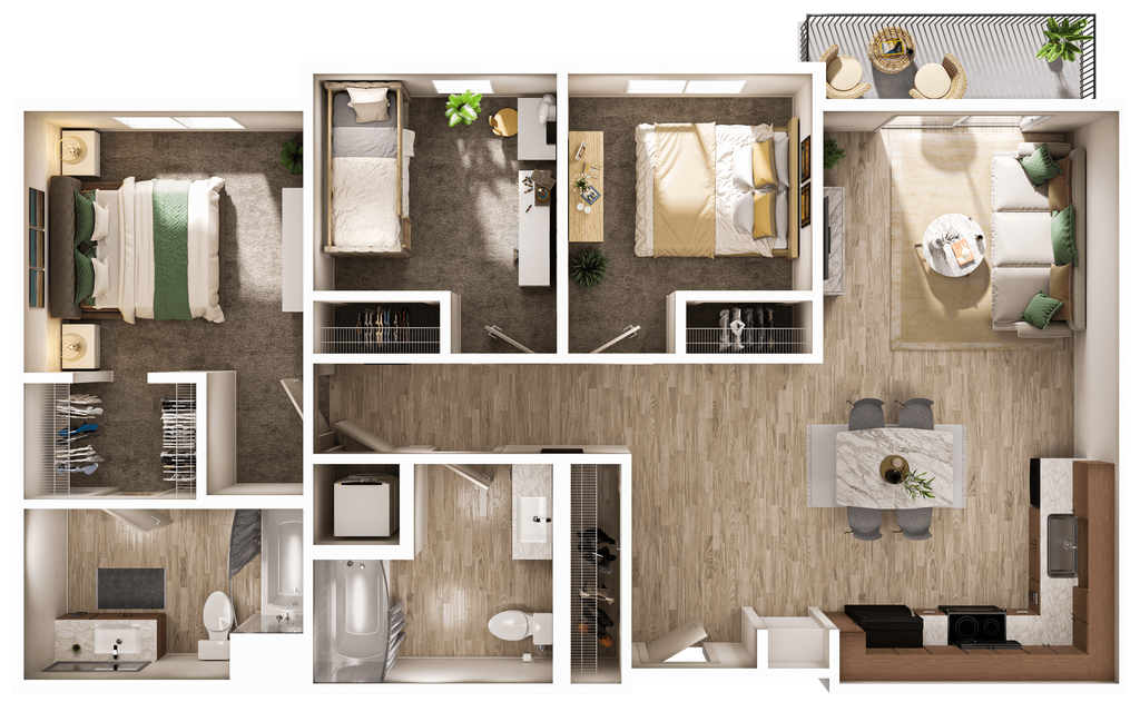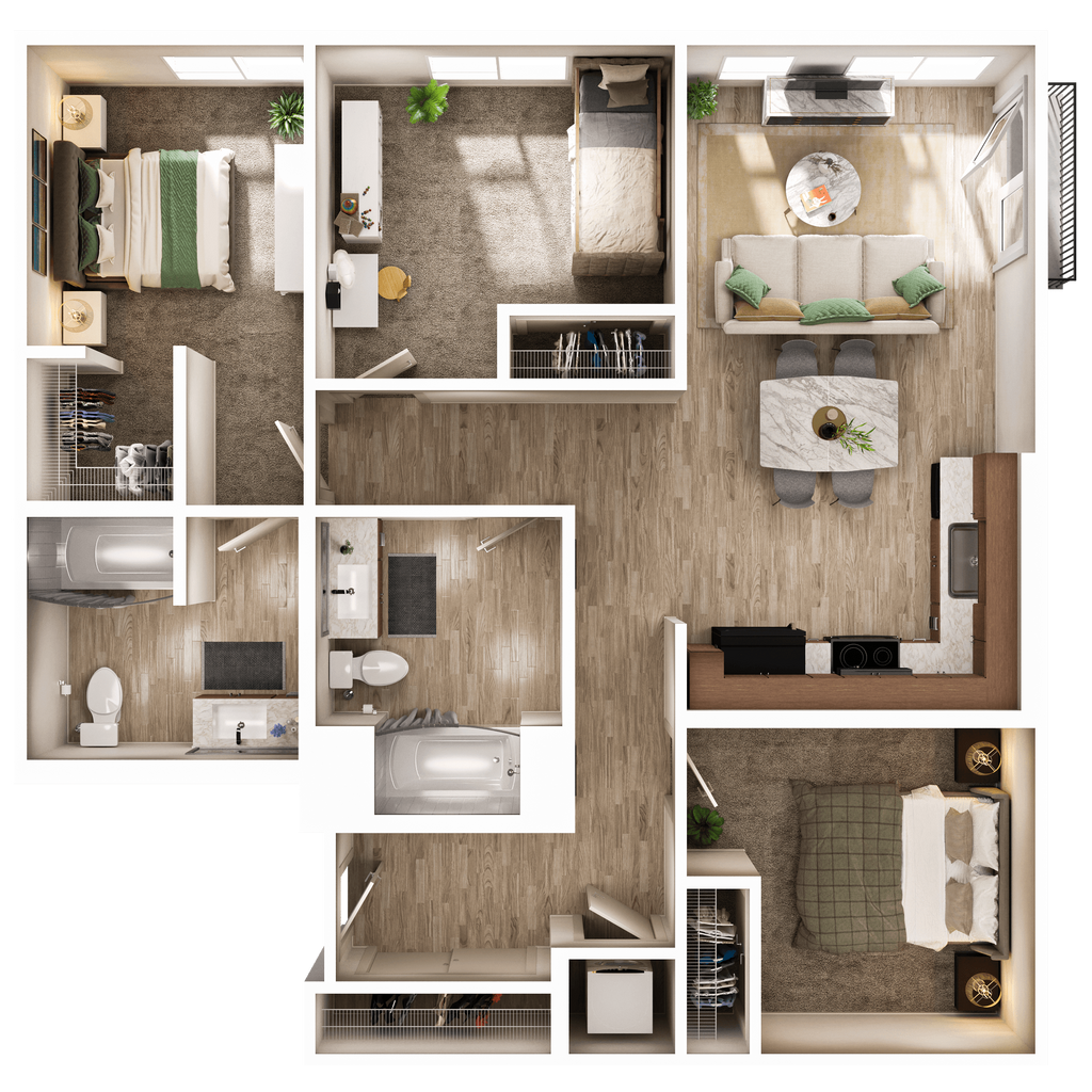 Modelo de apartamento: C3Llame para Precios3 Dormitorios, 2 Baños, 1054-1060 sq ftNo Disponible![]()