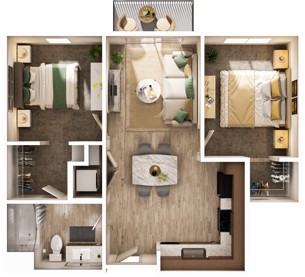 2 Dormitorios, 2 Baños, 862-885 pies²El más grandeEsta opción tiene las unidades más grandes para este modeloGalería del Modelo