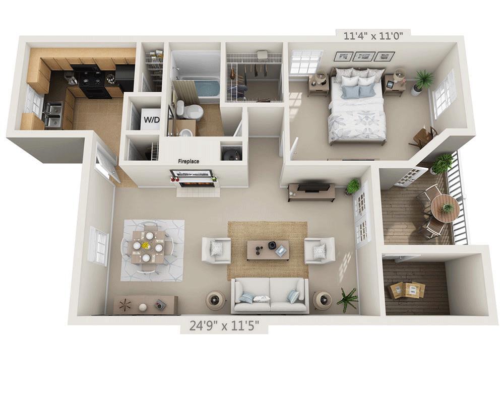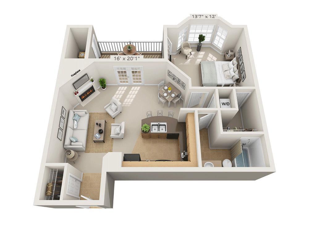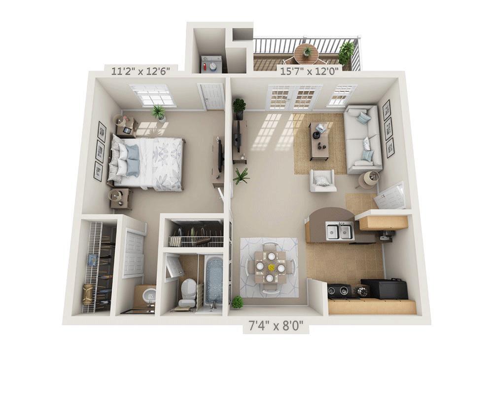 1 Dormitorio, 1 Baño, 612 pies²Precio Mensual TotalDisponible AhoraGalería del Modelo