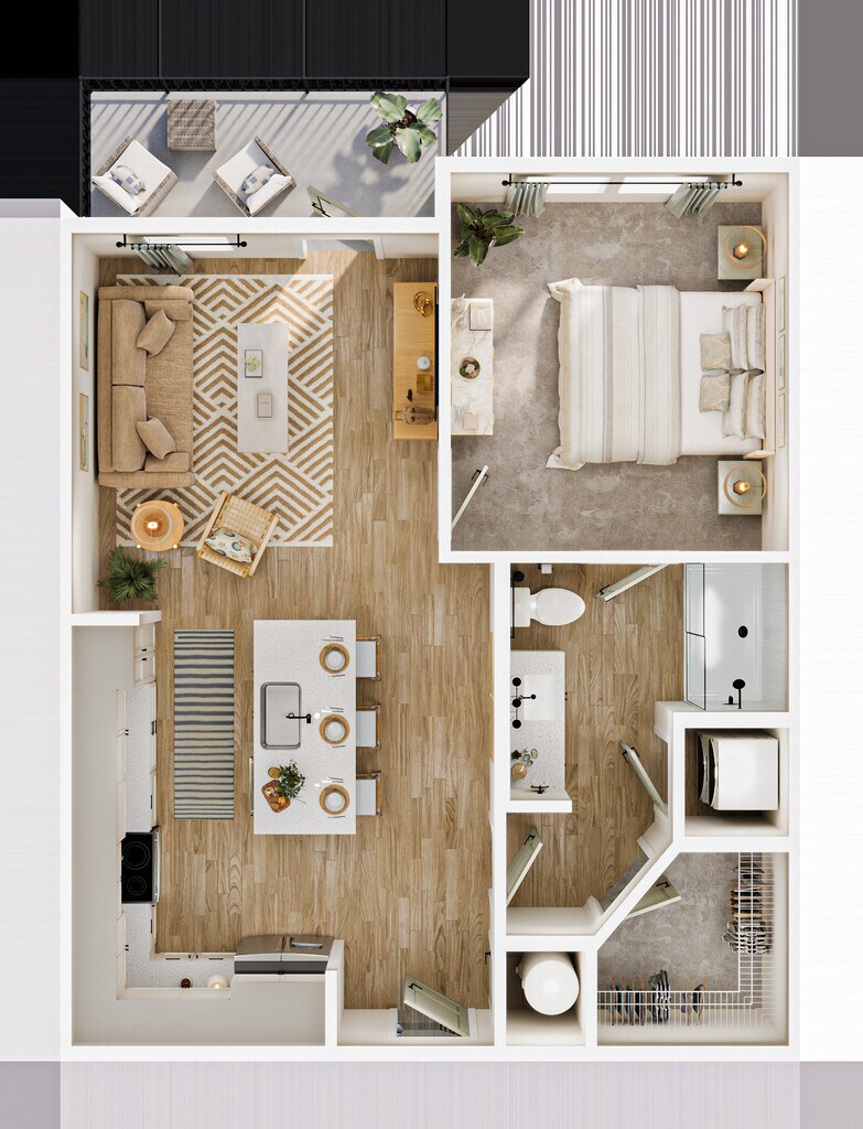 Precio Fecha Disponibilidad Unidad Pies² Desde $1,849 Llamar para disponibilidad B3 1091 pies² Características y Comodidades de Modelo