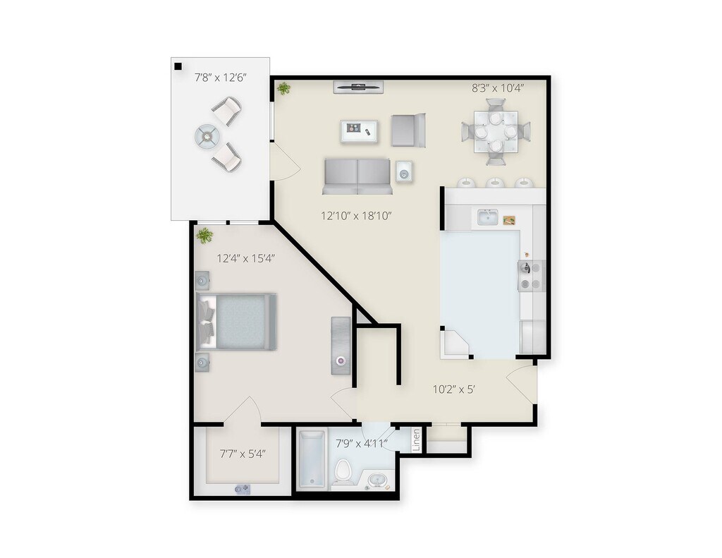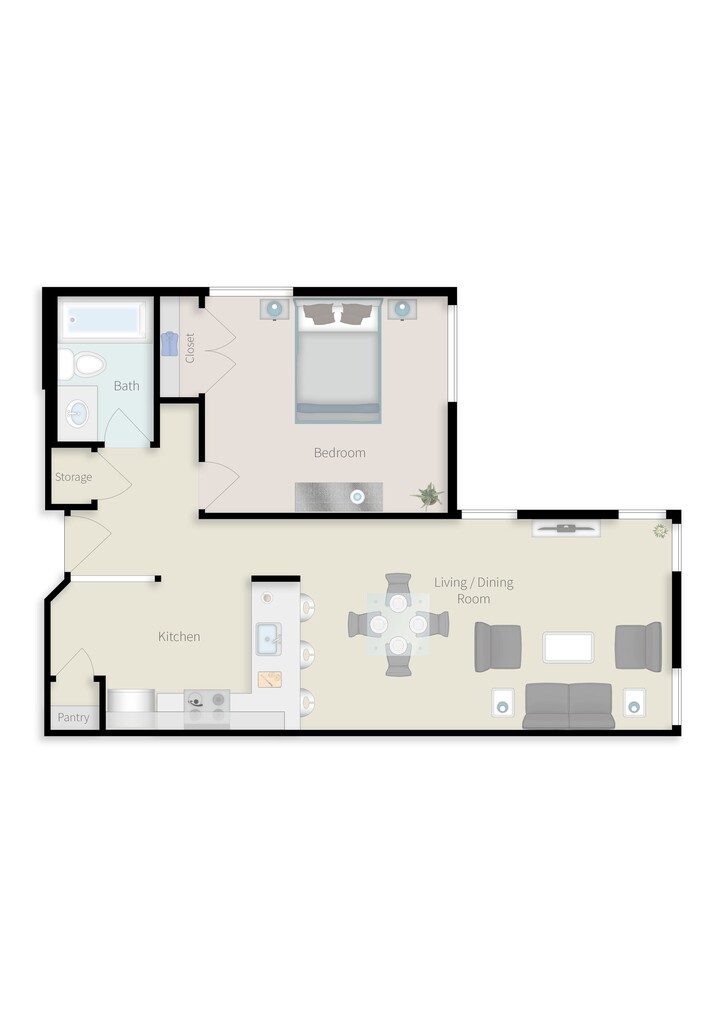 1 Dormitorio, 1 Baño, 840 pies²Galería del Modelo