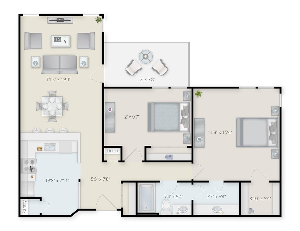 3 Dormitorios, 2 Baños, 1192 pies²Galería del Modelo