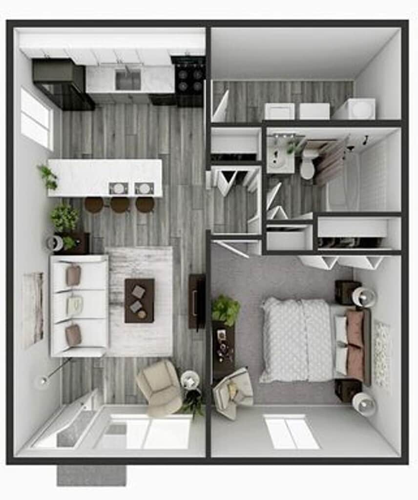 1 Dormitorio, 1 Baño, 634 pies²Disponible AhoraGalería del Modelo