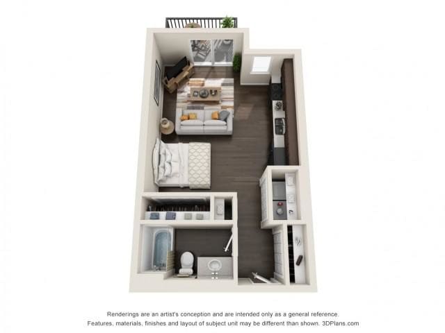 Estudio, 1 Baño, 522 pies²Disponible AhoraGalería del Modelo