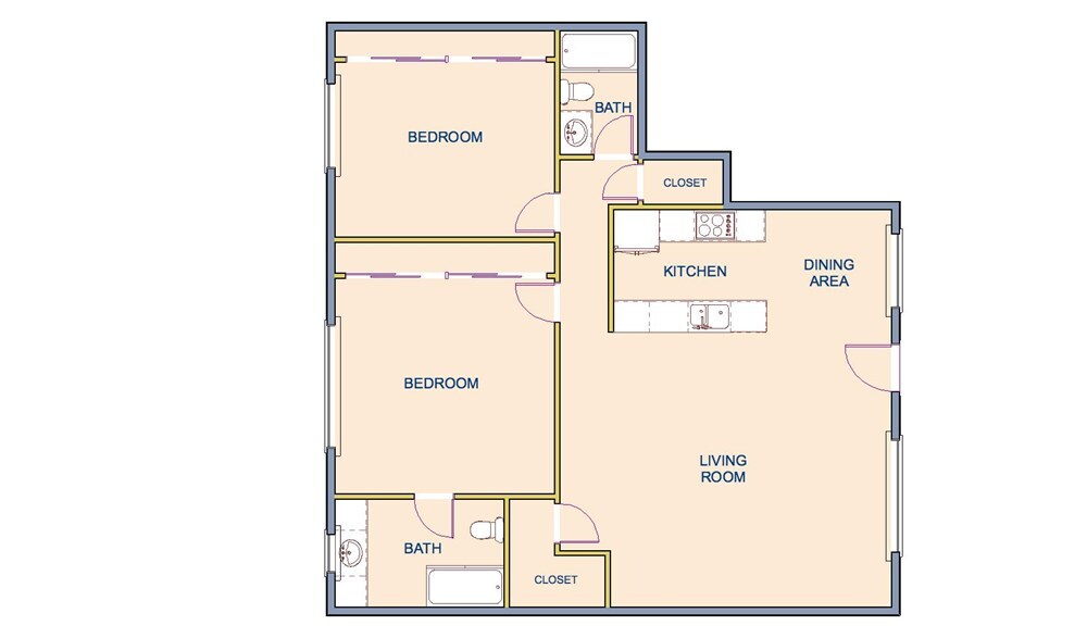 2 Dormitorios, 2 Baños, 950 pies²Galería del Modelo