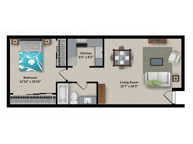 Modelo de apartamento: The FlatLlame para Precios1 Dormitorio, 1 Baño, 700 sq ftNo Disponible![]()