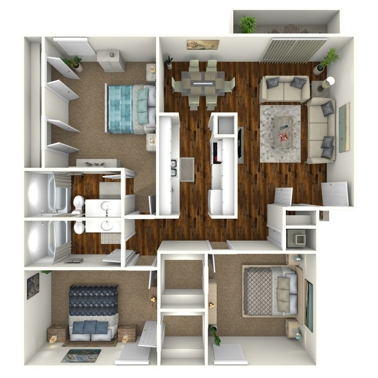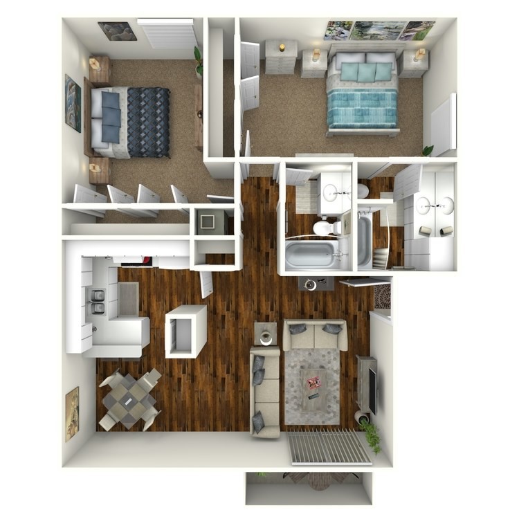 Modelo de apartamento: B-2$9152 Dormitorios, 2 Baños, 965 sq ftNo Disponible![]()